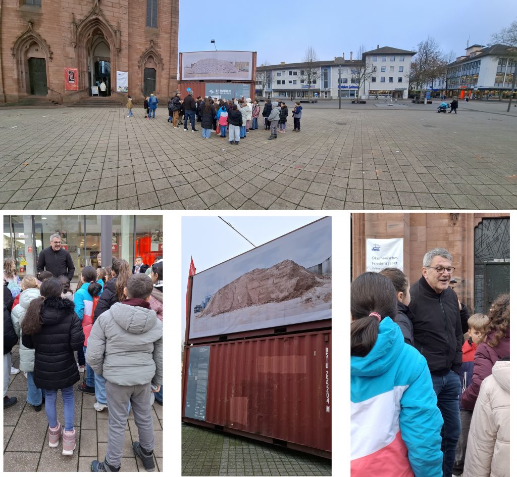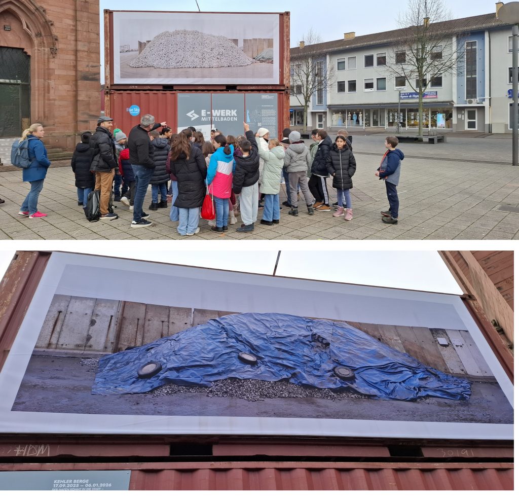 Am Nachmittag des 11.12.2025 besuchten beide 4. Klassen der Grundschule Sundheim im Rahmen eines Lehrgangs die Ausstellung „Kehler Berge“ in Kehl. Bereits der Start war etwas Besonderes: Vor der Sparkasse wurden die Schülerinnen und Schüler herzlich begrüßt – zur Einstimmung gab es für alle Gummibärchen.