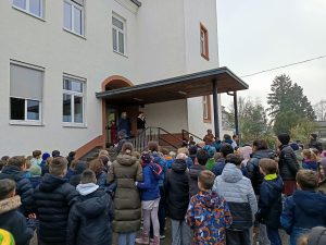 Am Nachmittag des 11.12.2025 besuchten beide 4. Klassen der Grundschule Sundheim im Rahmen eines Lehrgangs die Ausstellung „Kehler Berge“ in Kehl. Bereits der Start war