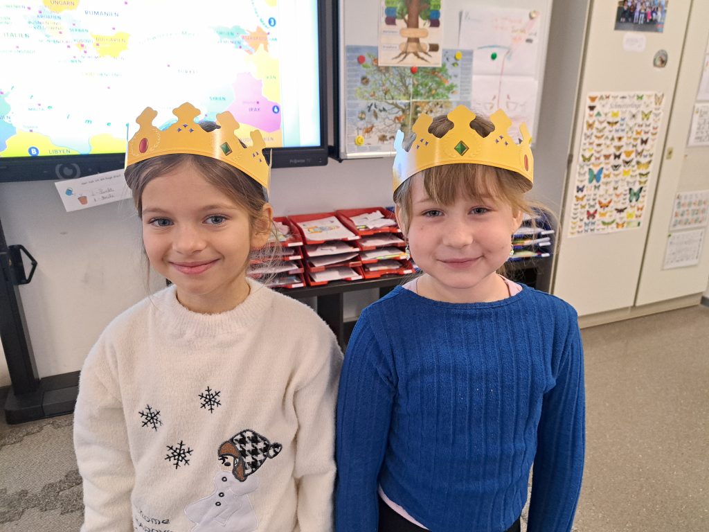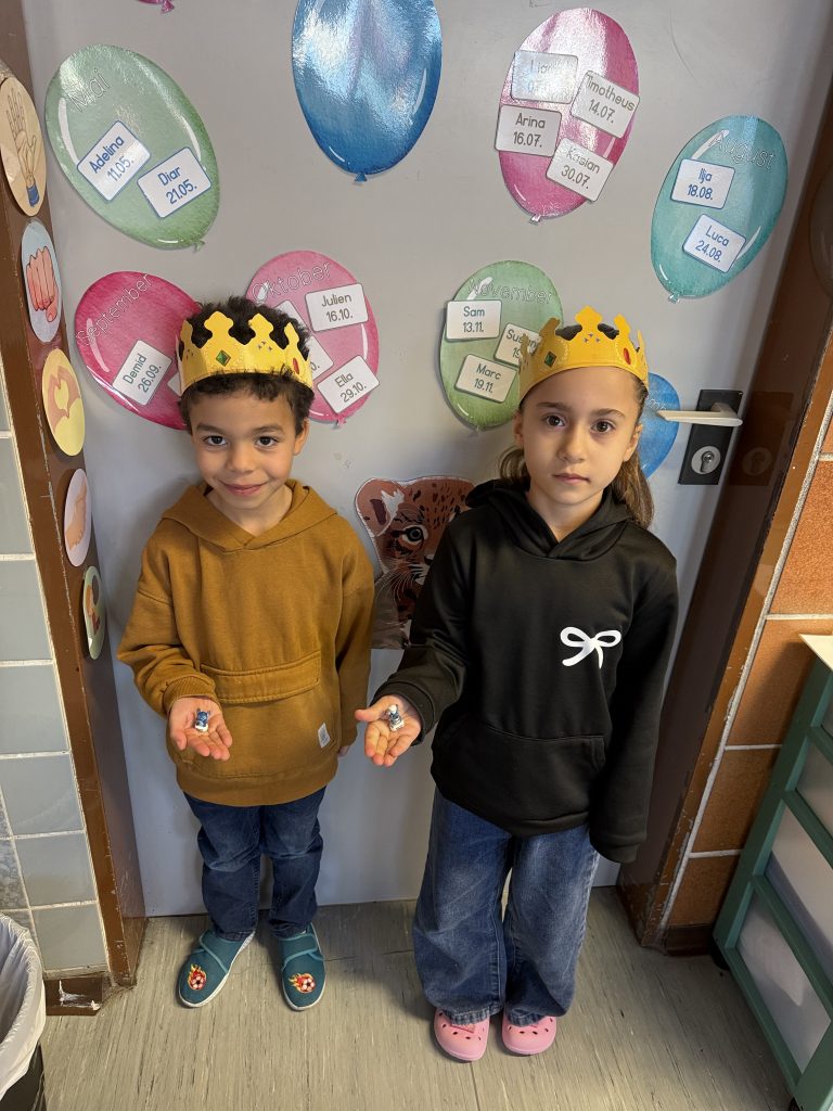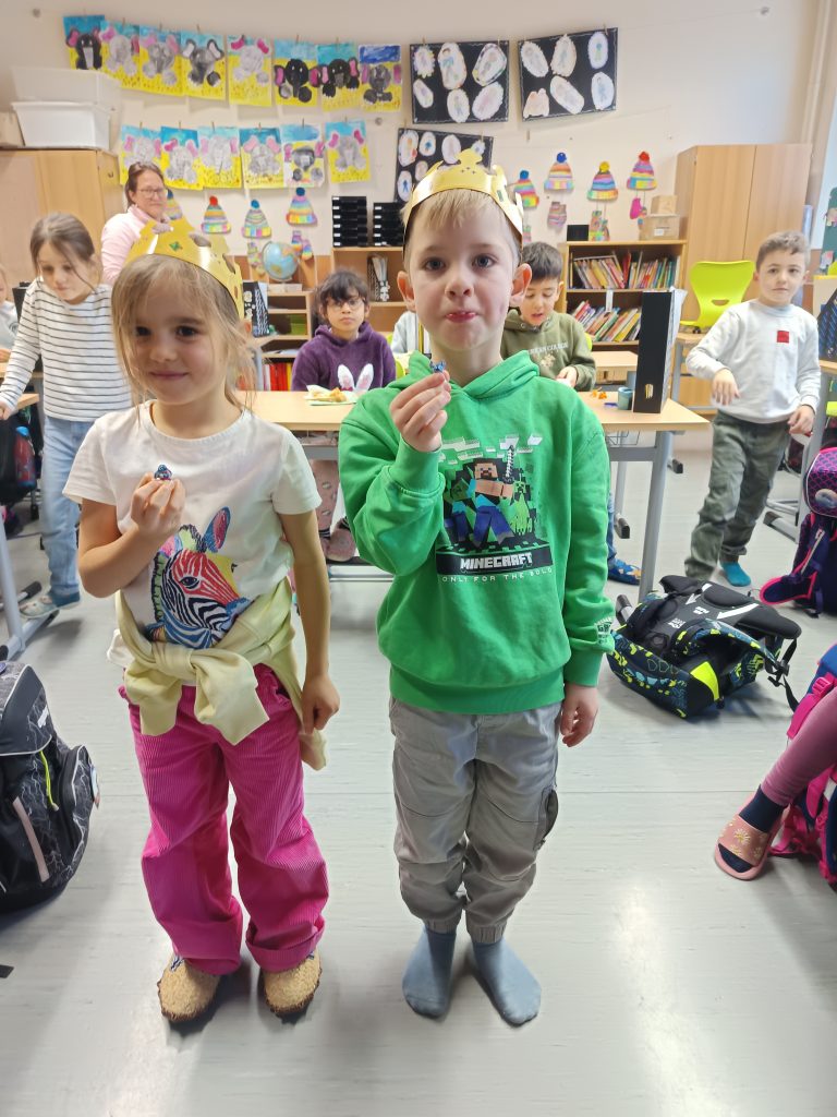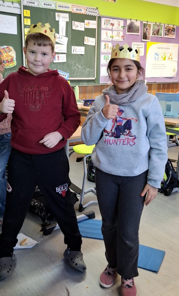 Anlässlich des Tages der Heiligen Drei Könige fand in allen Klassen der Grundschule Sundheim ein gemeinsames Ritual statt. Im Mittelpunkt stand die traditionelle Galette des Rois. Mit Spannung warteten die Kinder darauf, wer den Glücksbringer im Kuchen entdecken würde. Das gefundene Symbol bestimmte die Königin oder den König des Tages, der feierlich mit einer Krone gekrönt wurde. Dieses schöne Ritual sorgte für Freude, Gemeinschaft und eine besondere Atmosphäre im Schulalltag.