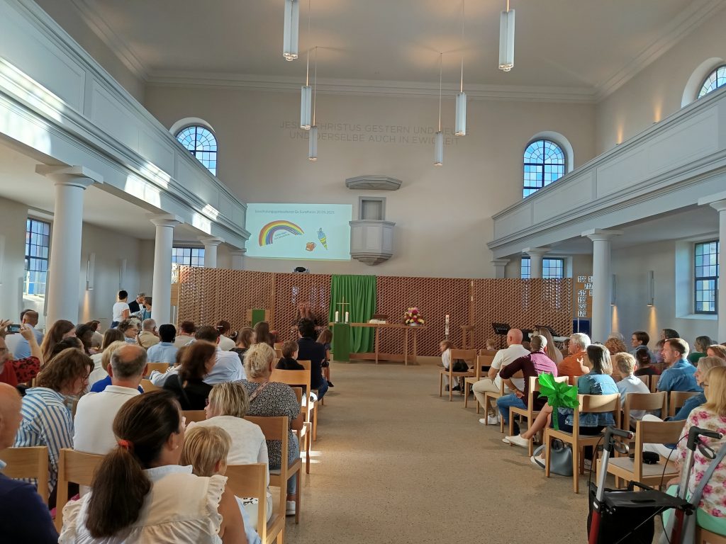 Der Tag begann mit einem Gottesdienst in der Christuskirche, der von vielen Familien besucht wurde. Die Kirche war bis auf den letzten Platz gefüllt. Gemeinsam wurde gesungen, gelacht und mit Bewegungen die Lieder lebendig gestaltet. So konnten die Kinder und ihre Familien gestärkt und voller Zuversicht in den großen Tag starten.